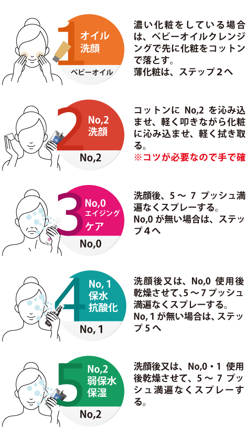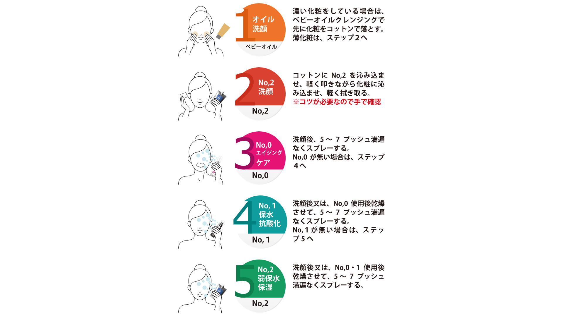 化粧水として使用する順番は、No,0➡️No,1➡️No,2の順です。